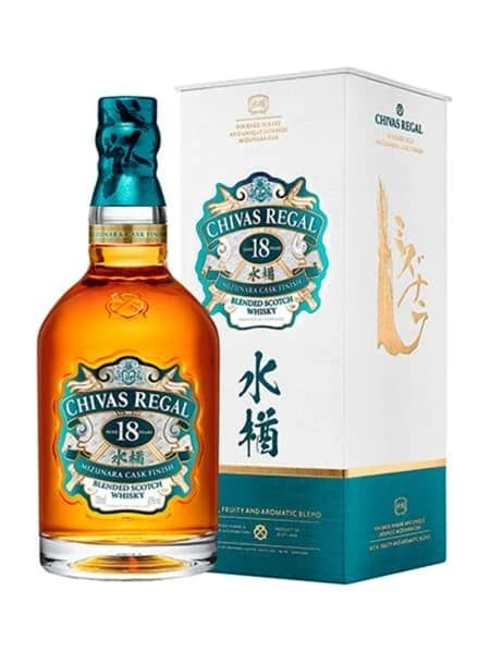 Rượu Chivas 18 năm – Mizunara Cask Finish (Chivas 18 Nhật) – dòng whisky blended Scotland này được ủ tối thiểu 18 năm trong thùng gỗ sồi, trong đó được ủ cuối cùng trong thùng gỗ sồi Mizunara Nhật trước khi đóng chai.